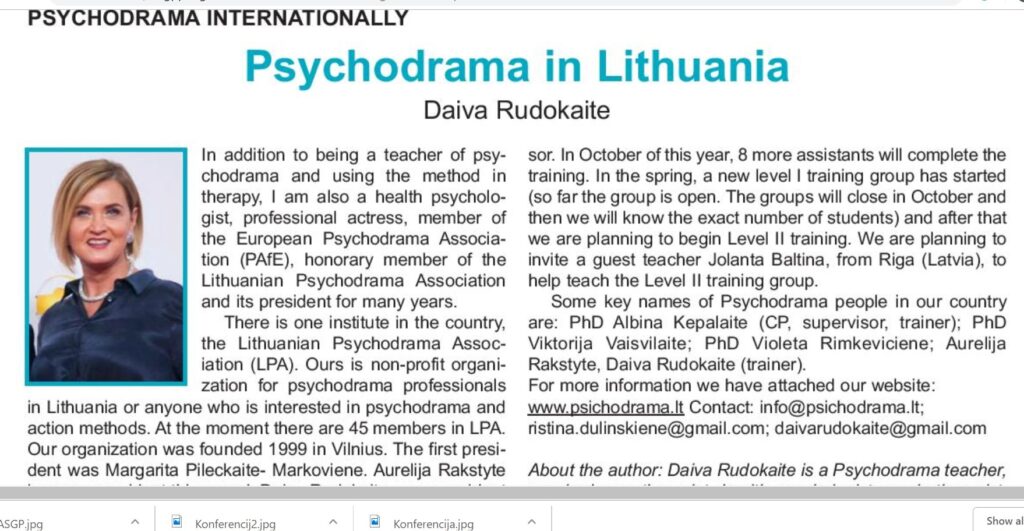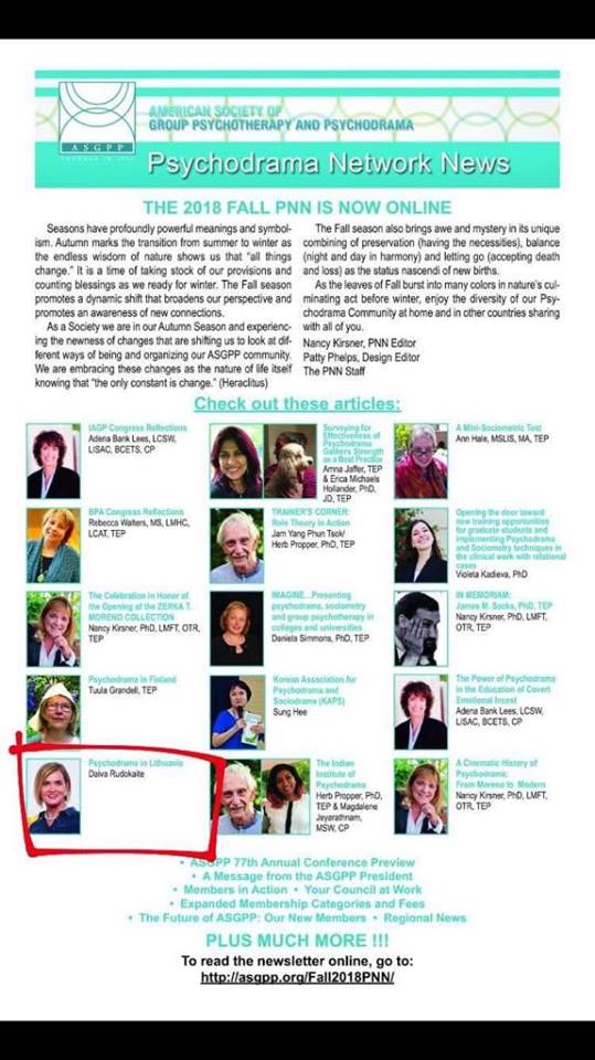 Kviečiame pavartyti American Society of Group Psychotherapy and Psychodrama naujienlaiškį ir ten rasti pristatymą apie Lietuvos psichodramos draugiją